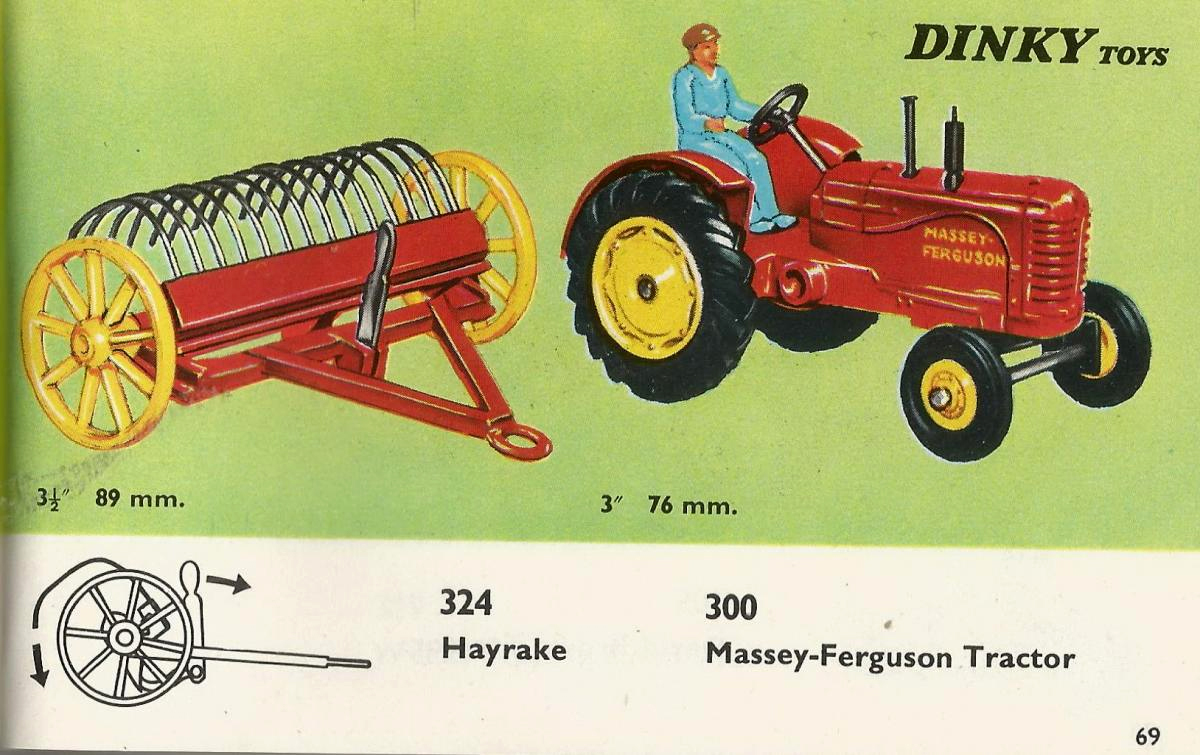 The Massey-Harris Tractor shown in the Dinky Toys 1964 and 1965 catalogs without the brand name on the model.