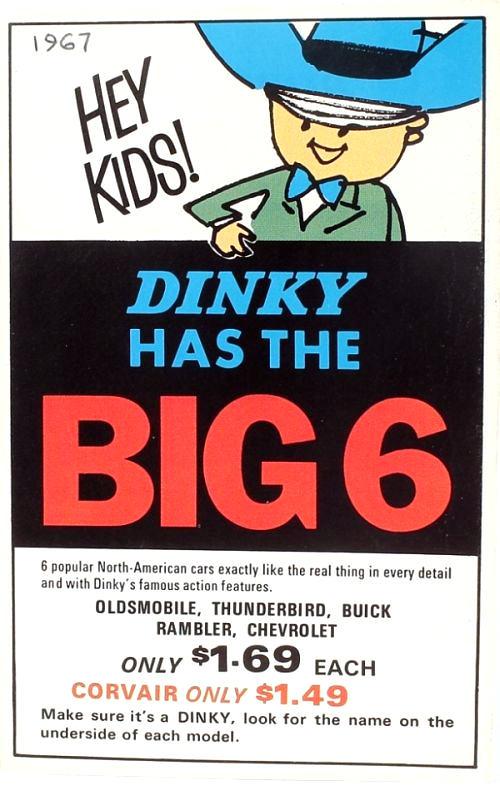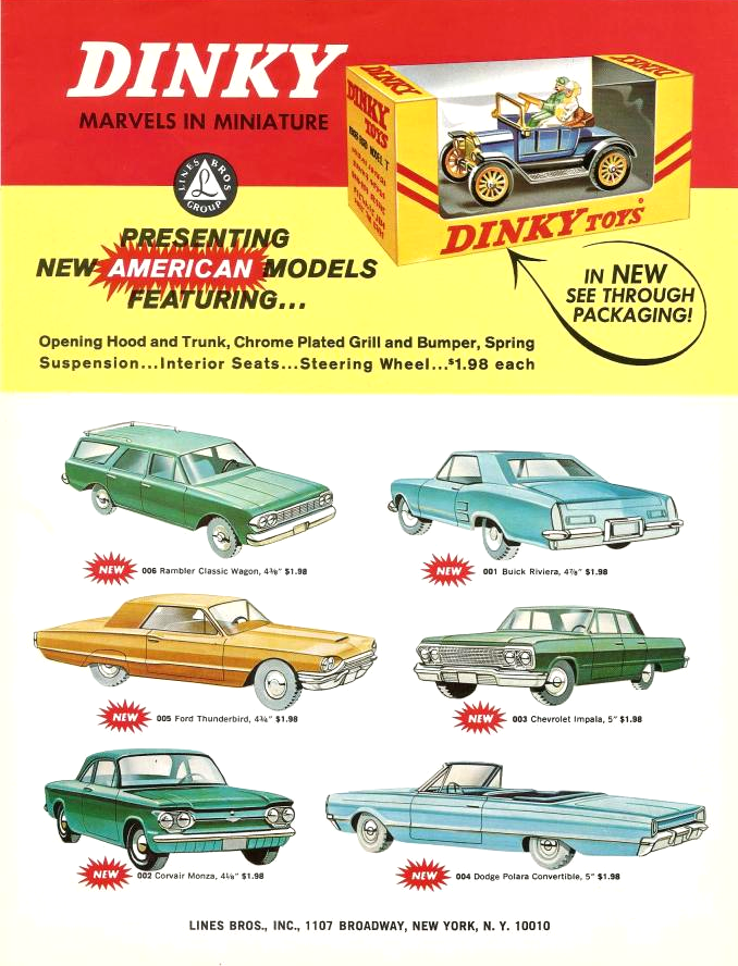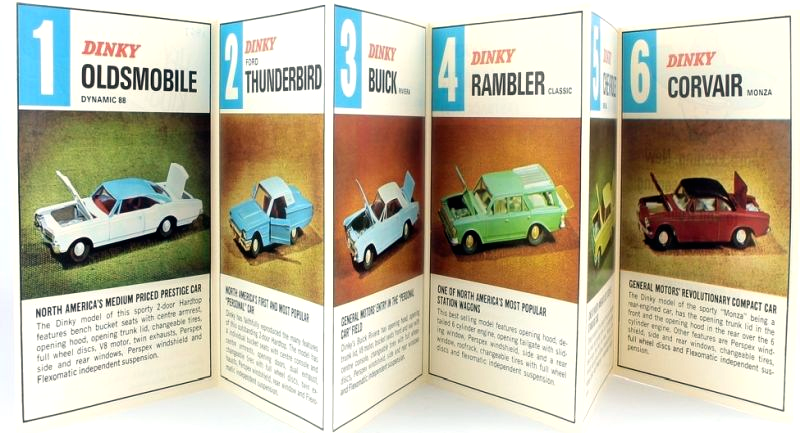 To introduce the new models as Dinky Toys, all six models were shown on a flyer for Canada in 1964. The following year, four models were introduced in Canada and North America, and finally in 1966 the last two models were released.
