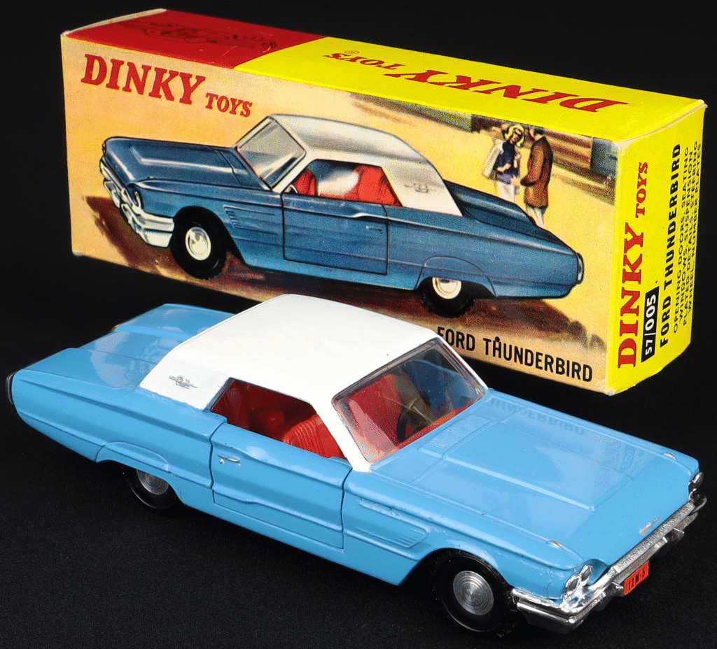 A fine model based on the 1964 Ford Thunderbird two door coupe, this was also missing from the 1966 UK catalog. With opening doors, the overall look is spoiled if the doors are pushed in too far when closed. This model can be quite hard to find.