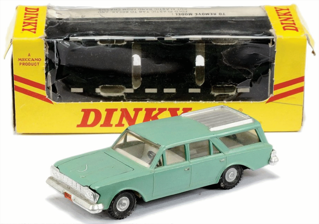 It’s not surprising that Dinky introduced the fully closed box for the 1966 model range. This model also has the panel shut-lines standing proud of the body. It is based on the Rambler Classic 770 Station Wagon and is hard to find.